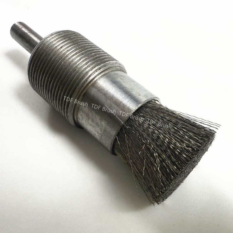 Premium crimped wire end brush with stainless steel bristles for precision deburring, rust removal, and metal polishing in industrial applications