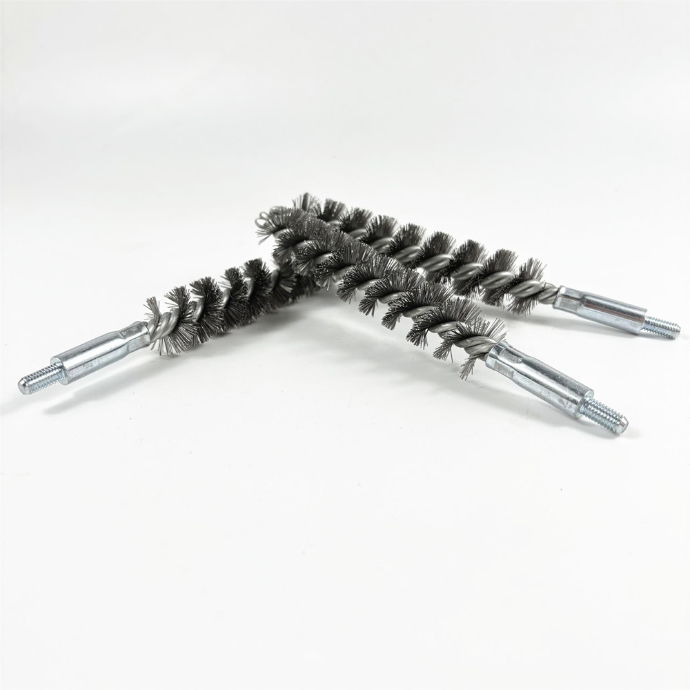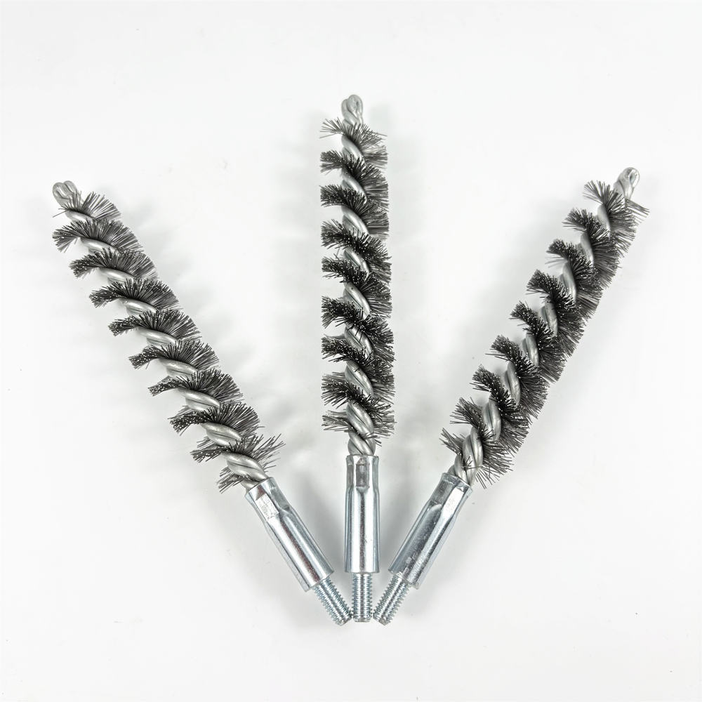 Industrial Steel Spiral Tube Brushes with Threaded Shank for Rust Grime Removal in Boiler Tubes